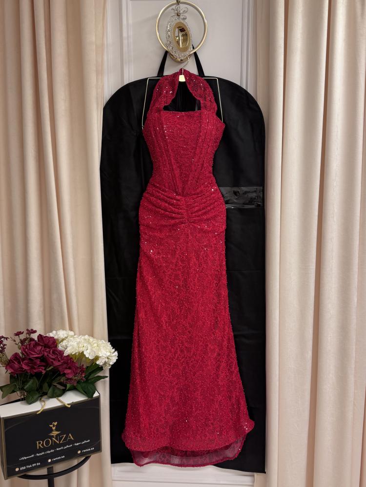 يأتي أحمر بالنعومة والراقي، وبقصة انسيابية مميزة بطول أمامي 160سم وخلفي 170سم تمنحك حضوراً أسرآ