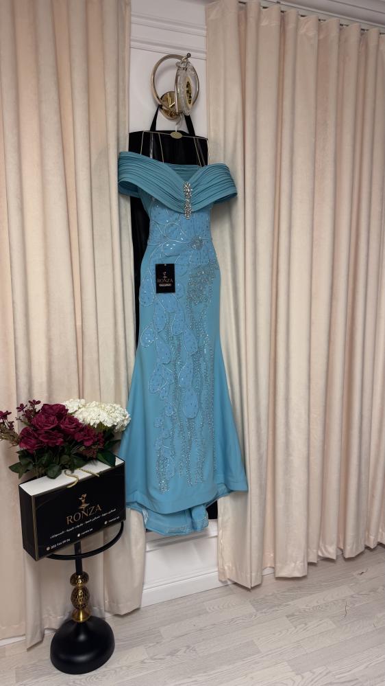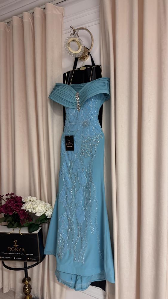 باللونالبيبي بلو الناعم ٫ يعكس براءة وأناقة مثالية لسهرات الأحلام.